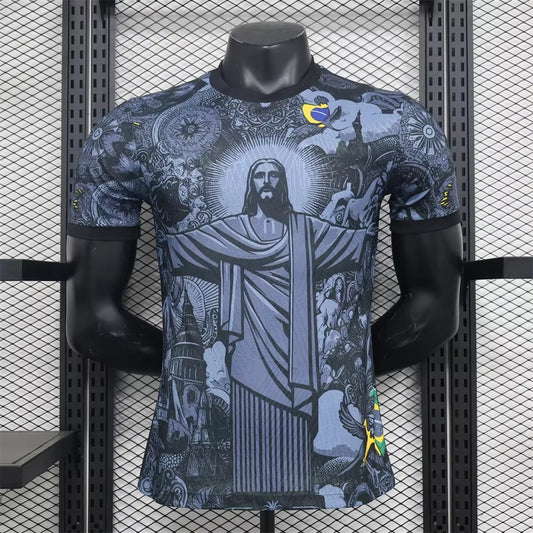 Summer Football Training Top Brazil Special Edition Jesus Black Grey Football Jersey Adult Children Outdoor Quick-Drying Tshirts